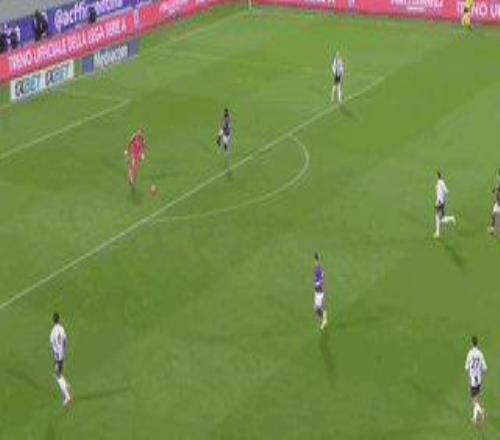 第45+6分钟,洛卡特利射门被封堵,科斯蒂奇禁区外得球后把腿远射,皮球飞入球门右侧,尤文1比0领先!
